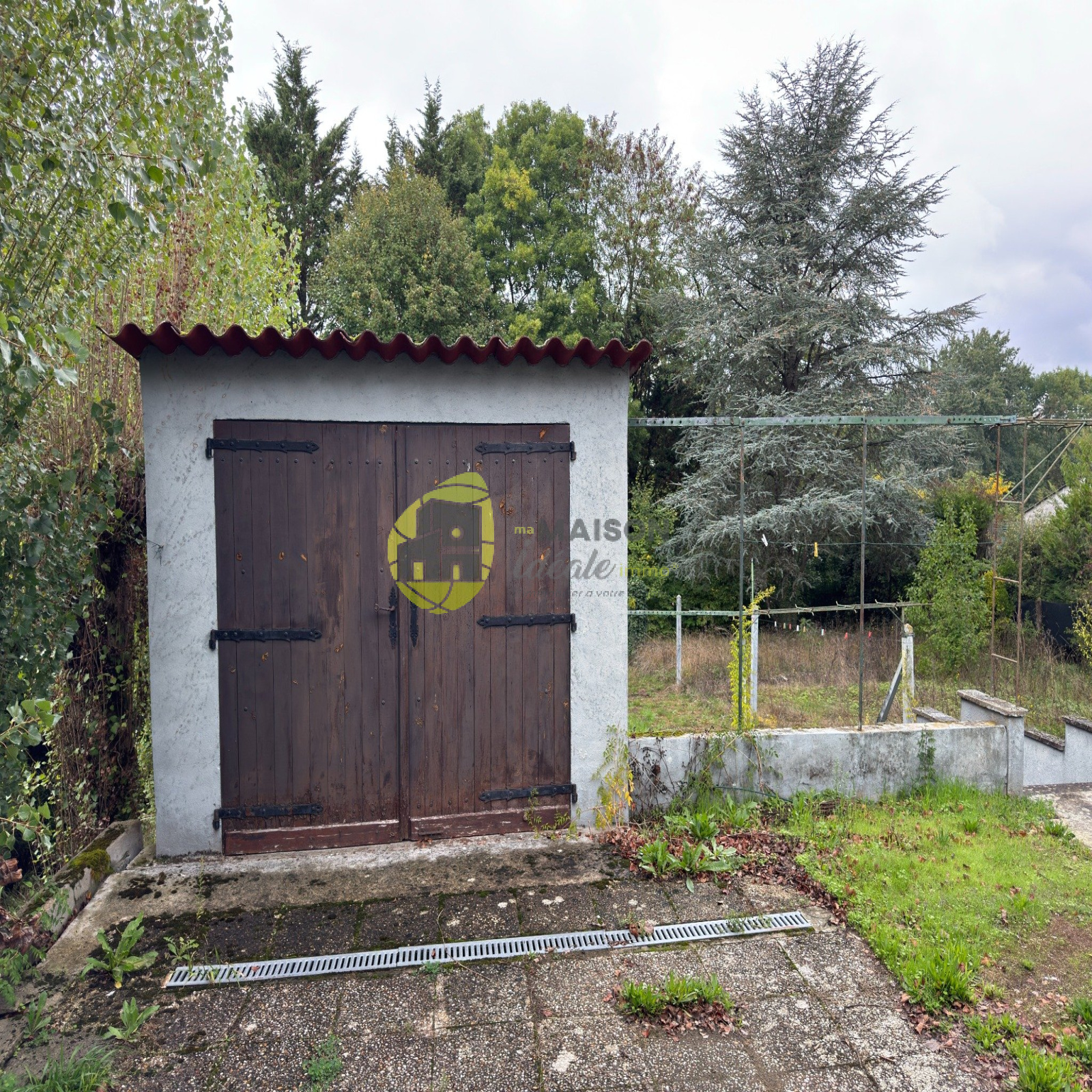 La maison dispose également d’un sous-sol complet, idéal pour du stockage, un atelier ou une buanderie, ainsi que d’un petit garage indépendant sur le terrain.