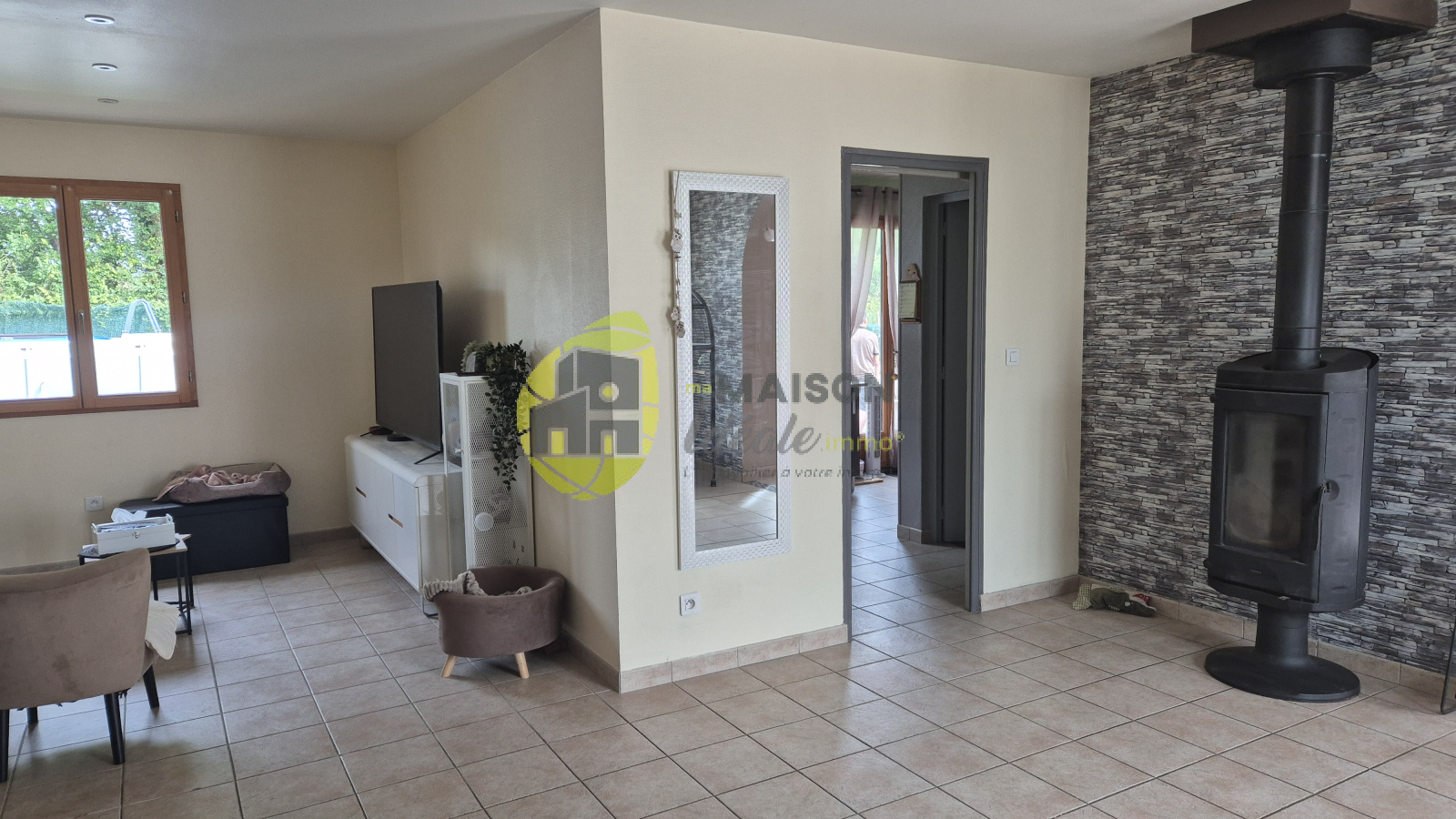 Chauffage au RDC par un poêle à bois et un chauffage électrique à l’étage. La maison est construite sur un vide sanitaire et bénéficie d’un diagnostic énergétique en classe C, gage d’une consommation maîtrisée.